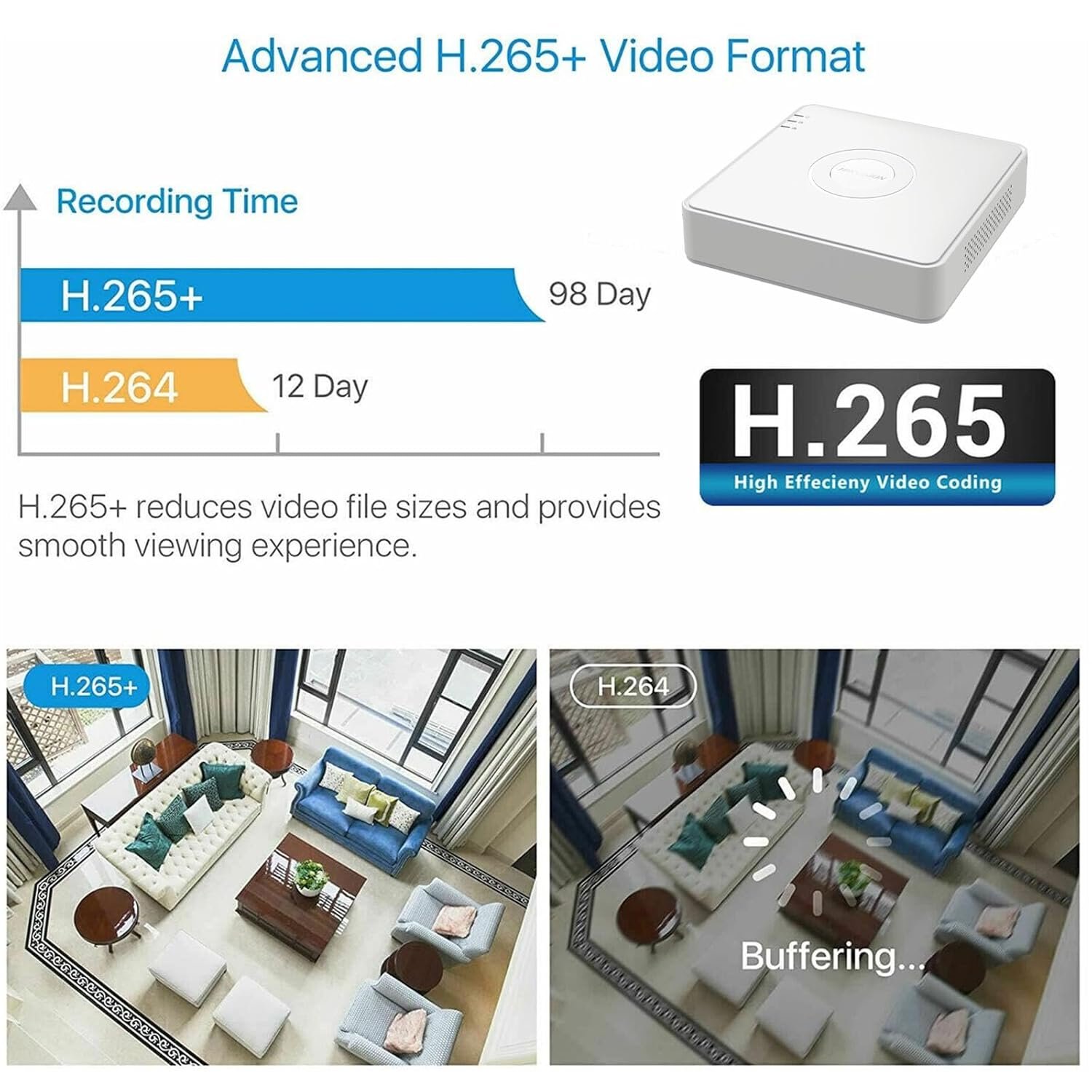 - H.265 Pro+ compression saves bandwidth and storage Record longer footage with high-quality clarity.