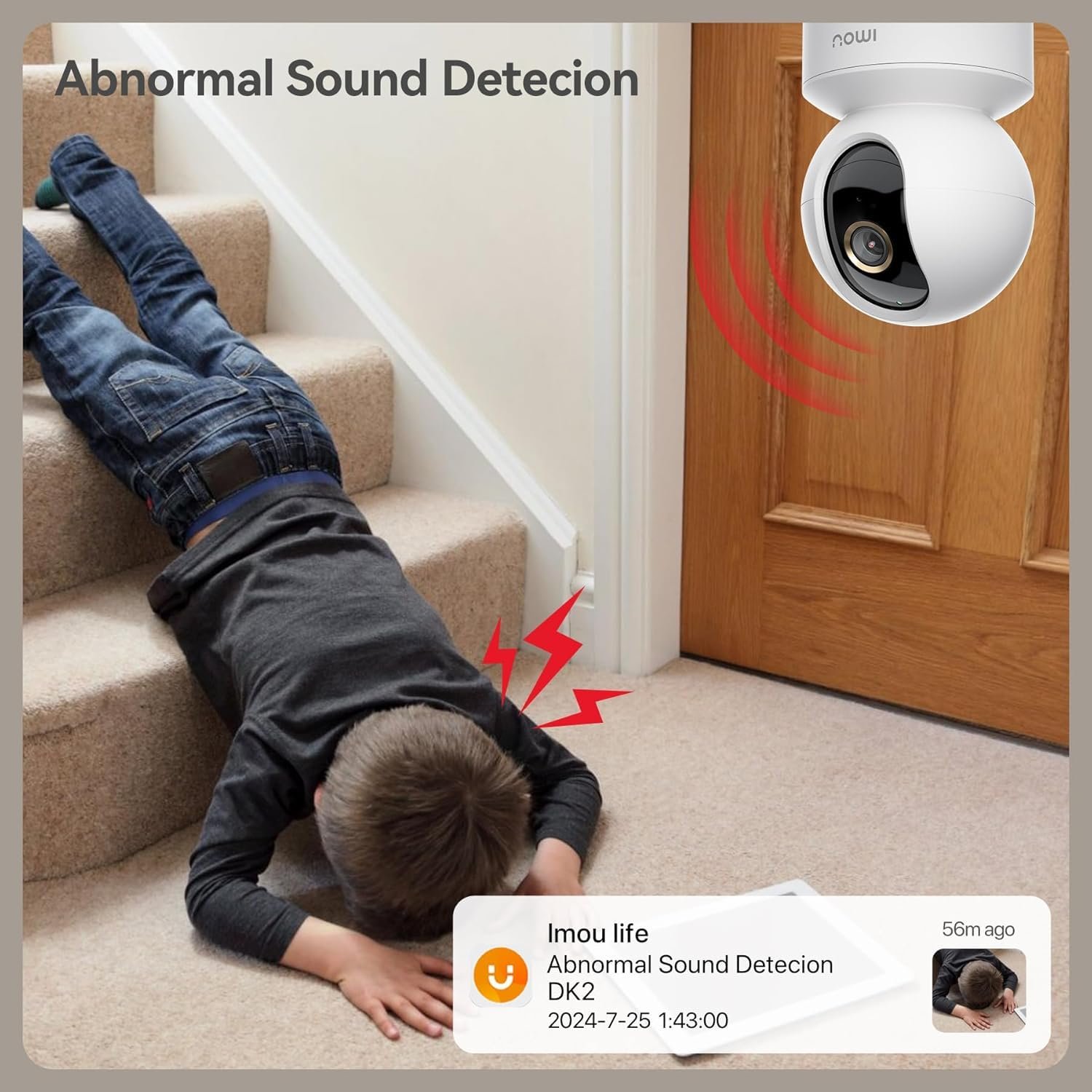 - 【2-way Talk & Abnormal Sound Detection】Equipped with a built-in speaker and microphone featuring echo cancellation, enabling crystal-clear two-way communication with your baby, pets, or family from anywhere. Receive instant alerts on your smartphone when the camera detects crying, barking, or other unusual sounds, allowing you to soothe them promptly.